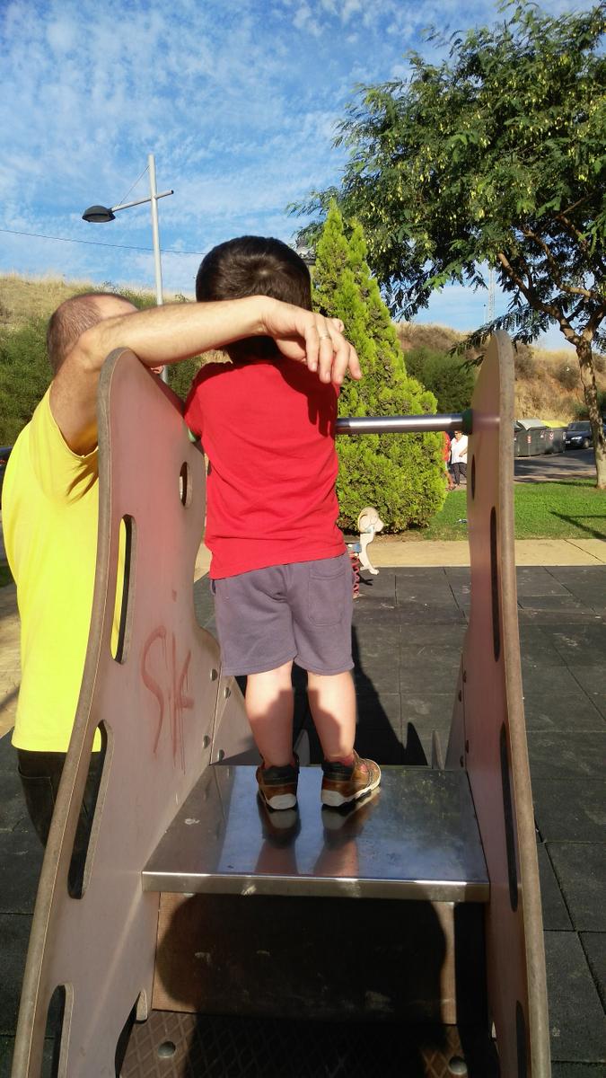 A ver, claro que hay parques con columpios adaptados o estructuras de juego preparadas para niños con silla, pero para niños como Pablo, que con 4 años no van en silla pero no pueden subir al tobogán, no hay.