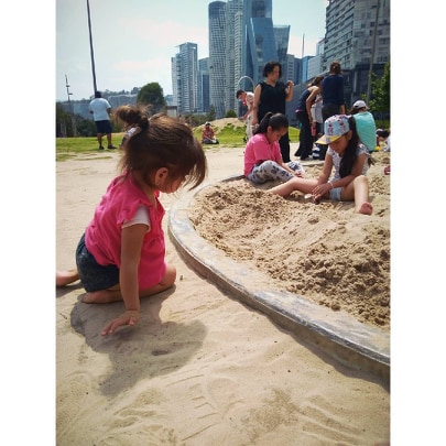 La zona de juegos infantiles cuenta con tirolesa, hamacas, diversos juegos y un arenero, el cuál fue la perdición de Isabel y es que ¿a qué niño no le gusta revolcarse en la arena?