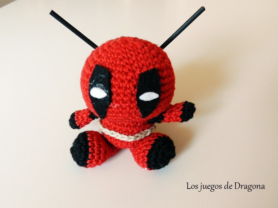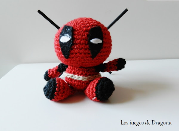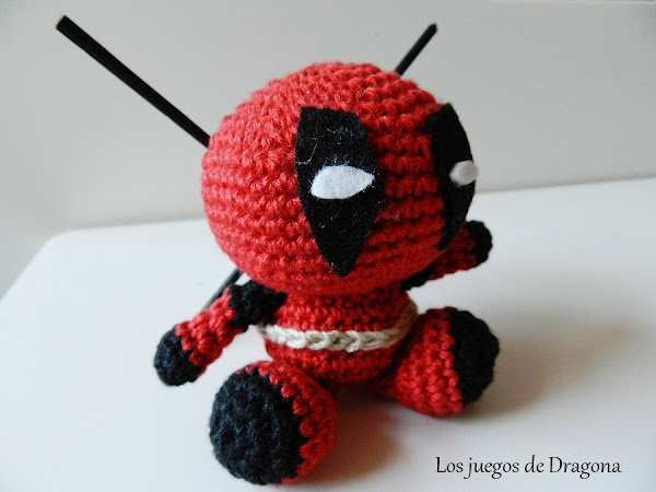 ¡Otro superhéroe! Y es que le he cogido el gusto de hacer mis propias versiones de héroes y villanos con el patrón de los conejitos kawaii del blog amigurumies. Ya van 3: Batman, su "amiguito" Joker y este, Deadpool, del que aún me queda ver la peli, jeje!
