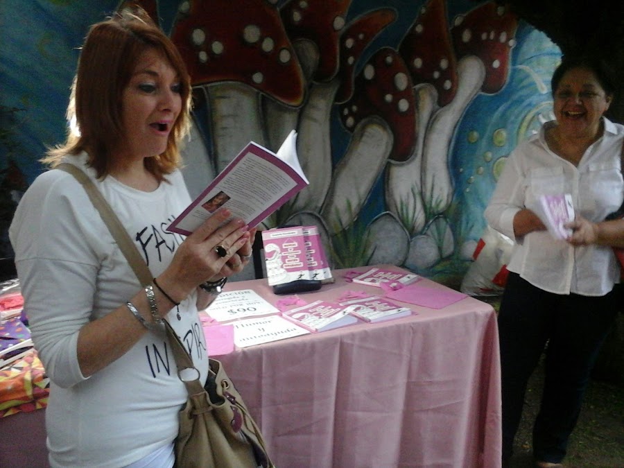 Me encantó la experiencia, las ferias de artesanos y microemprendedores tienen una onda especial, uno está rodeado de cosas bellas y de gente creativa. Y ver las caras de los visitantes cuando leían el título del libro y veían la tapa fue enriquecedor y motivador: muchas sonrisas, hombres y mujeres a los que les producía curiosidad pero que no se animaban a leer un poquito... y alguna que otra cara de vinagre. Siempre hay gente con cara de vinagre, es inevitable. Pero las expresiones alegres y los gestos de aprobación fueron mayoría absoluta.