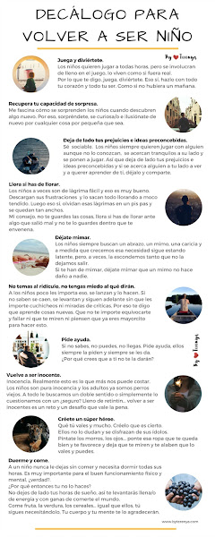 Por eso he creado este decálogo, para no olvidar que volver a ser niños es bueno para mi mente, para mi salud y para ser feliz.