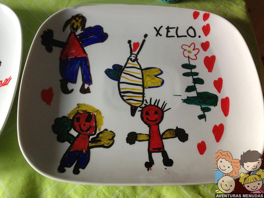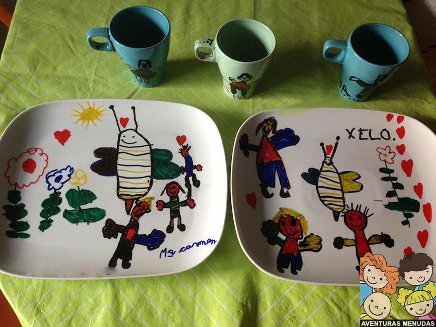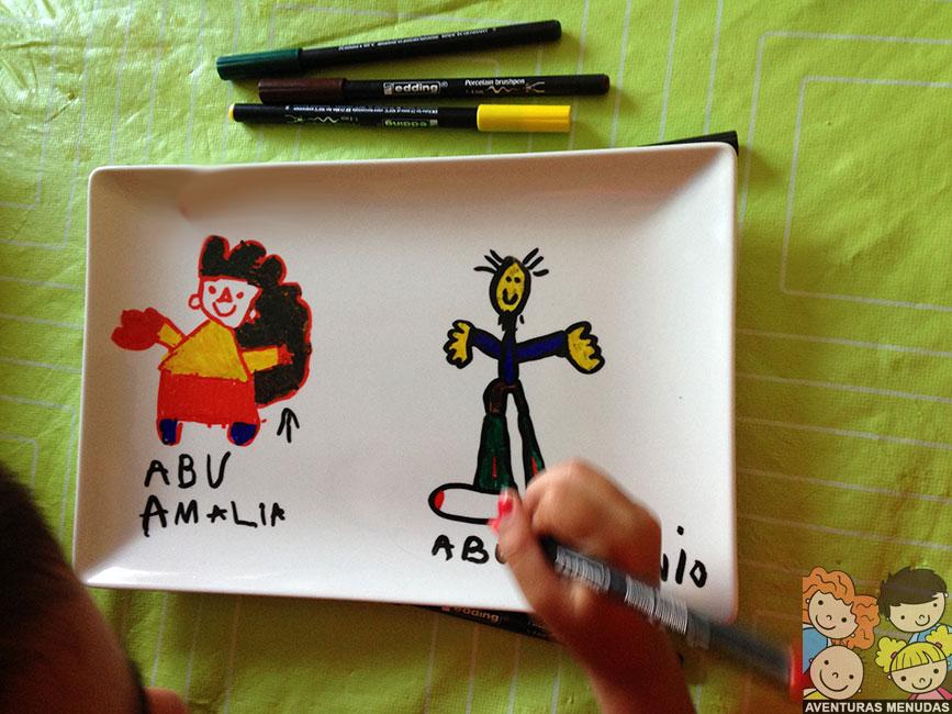 Un día se nos ocurrió probar, ¿qué tal si compramos una bandeja de cerámica y la decoramos para regalársela a la profe de mi hijo mayor y a la monitora del comedor? Después de la saga de las tazas decoradas, esta podría ser la evolución a un nivel mayor de creatividad.