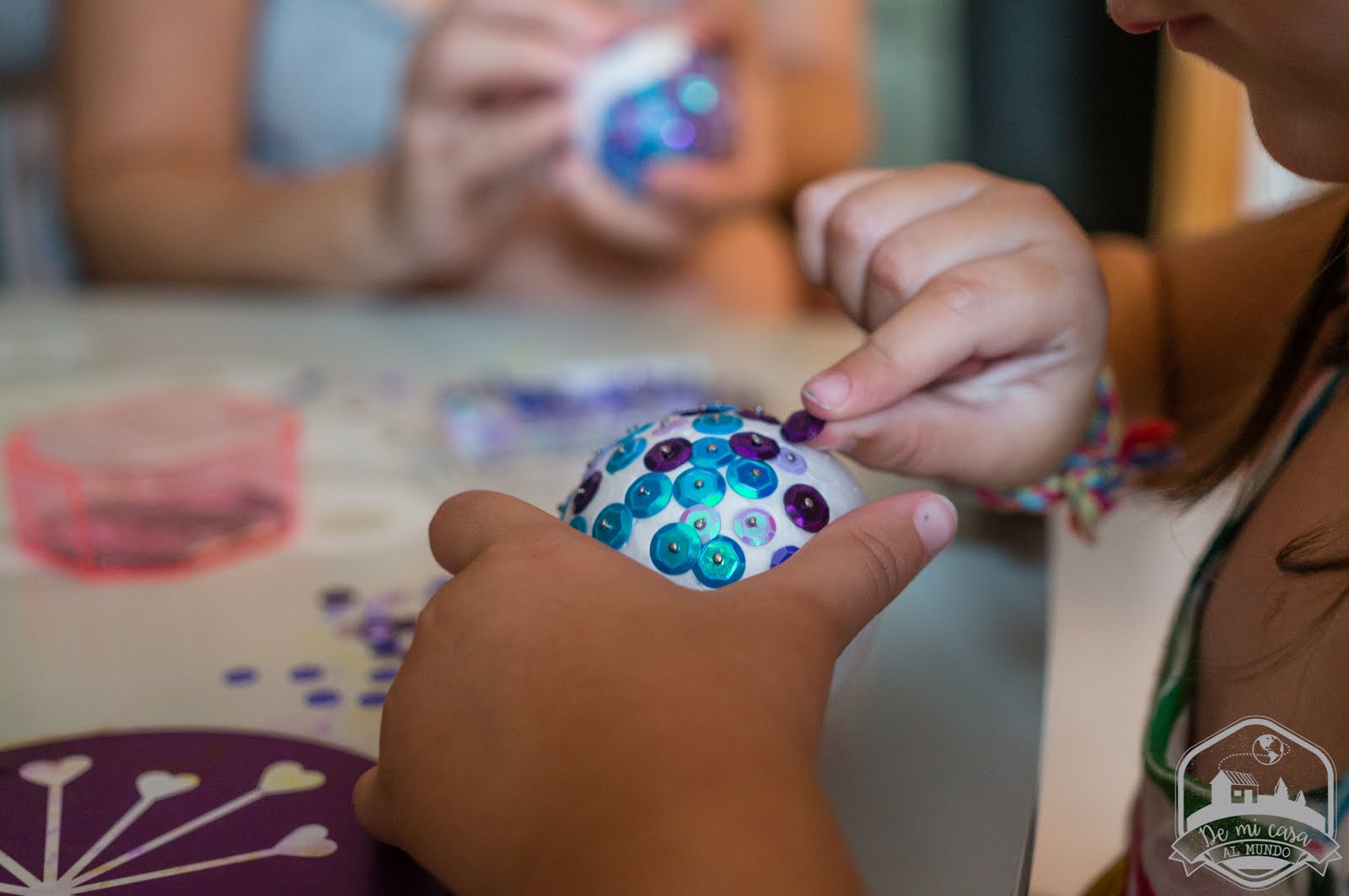 Estas bolas las hice en el taller de manuales de la escuela de Sunflower, donde les llevé la propuesta y pasamos un ratito agradable entre galletas de canela y té, pero hoy haremos más en casa.