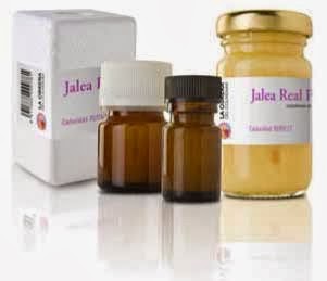 - 1 bote de jalea real fresca. Si no la habéis comprado ninguna vez, es un botecito muy, pero que muy pequeñito y el producto s espeso y de color blanquecino-amarillento. En la presentación está metido en su cajita de venta y envuelto en un corcho. Se conserva en el frigorífico.