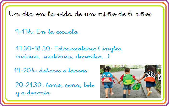 Algunos contestaran que sí. Supongo que sus argumentos serán" se lo pasa muy bien en el cole", "tiene muchos amigos allí"," ir a inglés o a kumon le ayudará en su vida académica, en un futuro"...