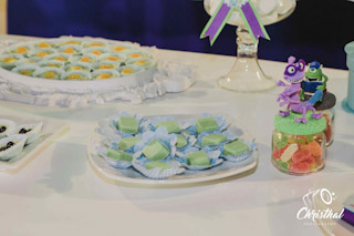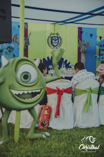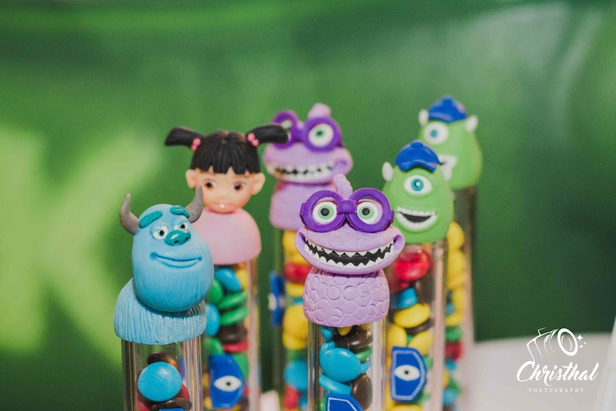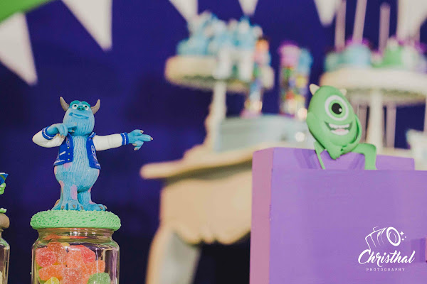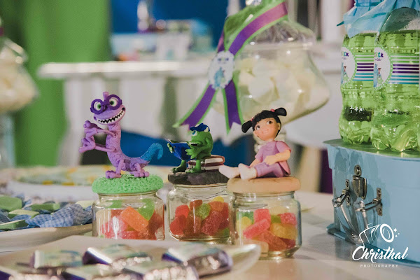 El Candybar fue decorado por Mishel una gran amiga que desde que conocí ame su dedicación y punche que le pone a todo lo que hace, es una emprendedora súper pilas, todos quedamos enamorados de las galletitas temáticas, las manzanas que se veían hermosas, y ni que decir de los detalles hechos en la mesa retratando algunos pasajes de la película #MonsterINC. su pagina es Eventos Thiago.
