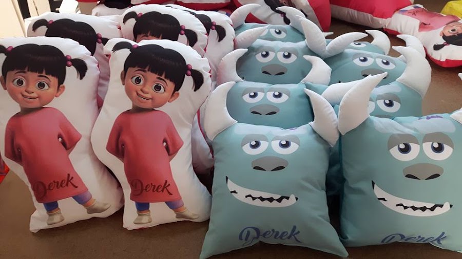 SORPRESAS:Las sorpresas las teníamos listas con mas de dos meses de anticipación #Losientosoyobsesivaaveces, cuando decidimos la temática teníamos claro que no encontraríamos algo que vaya con ello, así que le pedimos a nuestros amigos de Creame Sorpresas Infantiles Textiles que nos elaborarán almohadas con los personajes de la película de #MonsterINC , para las niñas hicimos a Boo y para los niños a Sullivan. Su trabajo fue genial primero diseño el modelo, el cual debí de aprobar y sugerir, ! Su trabajo es una maravilla, todo hecho con el mayor amor del mundo son unos capos!!! Así que estas almohadas las metí en una bolsa celofán con su lazo y listo!