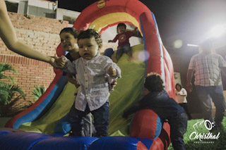 Así mismo debía de hacer algo para que los pequeños se diviertan, y la mejor opción fue añadir a la decoración un inflable para que grandes y chicos corran, jueguen, rían y se diviertan de maravilla, Derek se divirtió a lo grande!!! Este servicio lo proporcionaron nuestros amigos de Ludicus Play Ground su servició es una maravilla. Costo súper accesible, alquiler de paquete por 5 horas con una señorita que en todo momento esta cuidando de que los pequeños no se hagan daño y supervisando toodooo!!! De verdad son un éxito!
