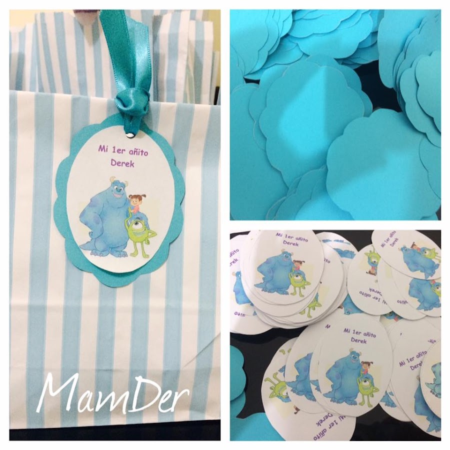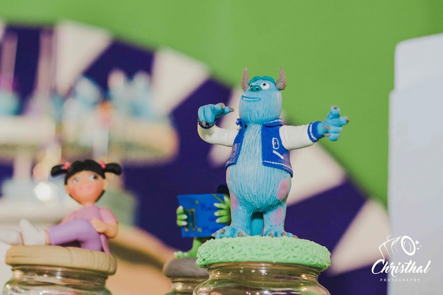 Bueno para Derek me fue súper sencillo antes de nacer le compramos un Sullivan de Monster INC y fue su primer peluche cuando nació, siempre vimos apego por él, bueno hasta que lo perdimos #LoSientoFueSinQuerer, de modo que decidimos la temática de Monsters INC. que a mi me encanta, pero en el mercado de temáticas en Trujillo lo único que puedes encontrar es bolsas de sorpresas y las velas; por lo demás nada de nada, fue todo un reto pero lo hicimos!