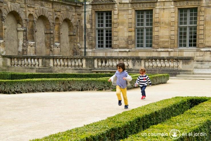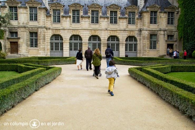Y mientras volvemos la vista hacia la fachada principal de Des Vosges, doblamos la esquina y nos adentramos en el Palacio de Sully sede hoy de los Monumentos Nacionales Franceses. De arquitectura clásica, con el uso de sillería, recibe a los visitantes con un cuidado jardín en donde los peques pueden disfrutar corriendo mientras huyen de la compostura más propia de los museos.