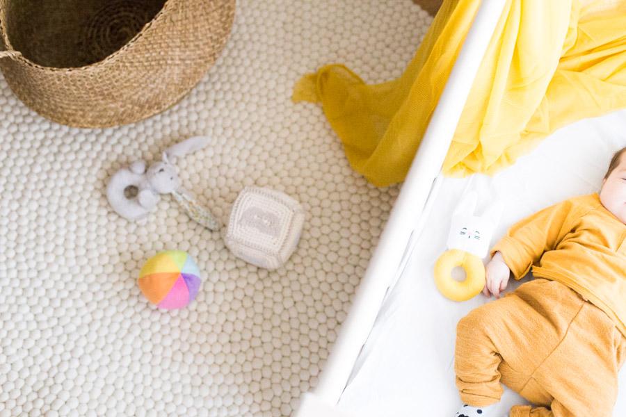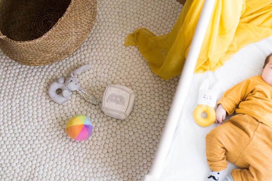 Allí pasará estos primeros meses, pero mientras sigo preparando con mimo sus cosas y detalles. Para el suelo elegí esta alfombra hecha a mano de Sukhy.