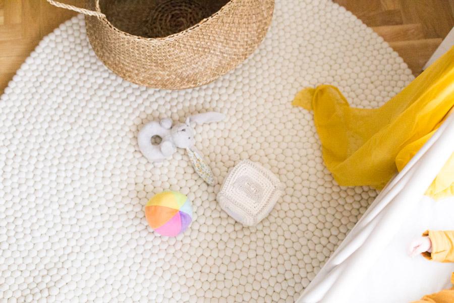 Yo elegí para Olivia, una alfombra de bolas de fieltro en color blanco roto y no puedo estar más contenta con ella. Además creo que aportar algo de valor a nuestra casa, con creaciones de artesanos que reciben un sueldo justo, le da un valor añadido a nuestra alma y a nuestra casa.