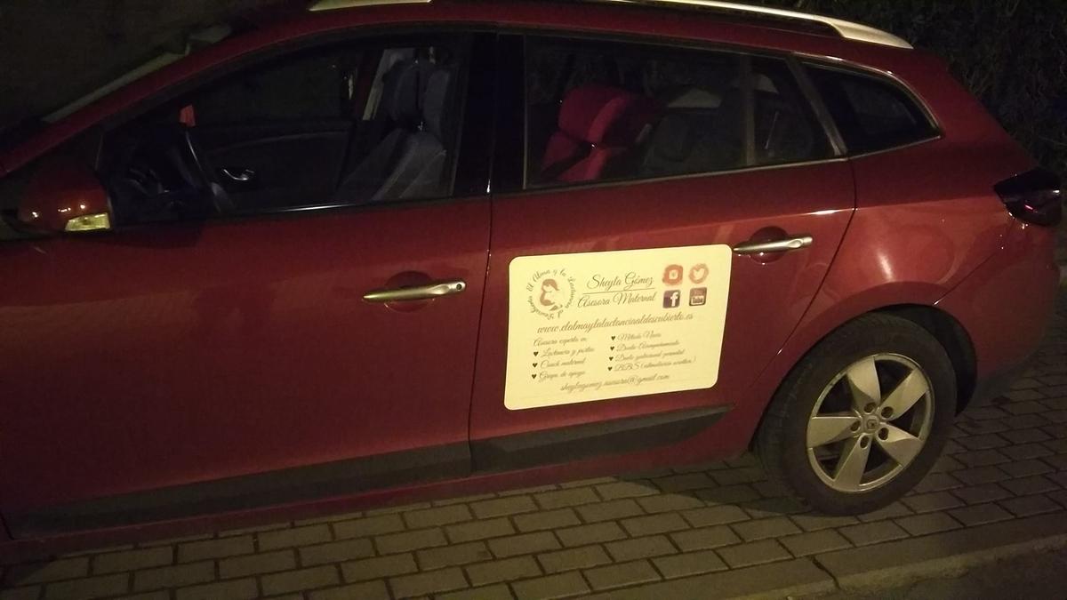 De este modo no me limito a llevar la publi en un solo coche, sino que lo hemos probado en los dos coches familiares. Ya que al ser un imán, se puede poner donde quieras, y eso esta super guay!!