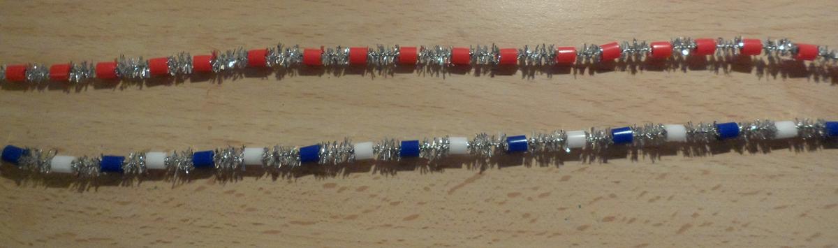 Para estas piñas, se tiene que preparar cada limpiapipa con bolitas de hamma de los colores y variaciones que queráis. Todo lo podéis encontrar en bazares sin problemas. Luego se enrolla en los huecos de la piña abierta, intentando que algunas de las bolitas de hamma queden encajadas para que no se salga fácilmente.