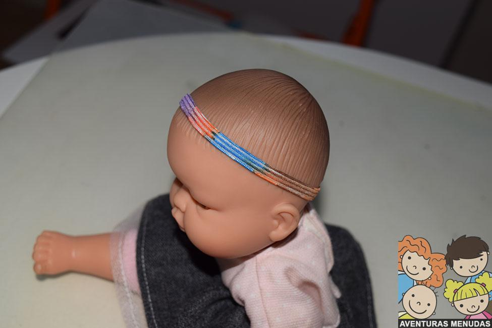 Y ¡conseguido!. Diadema lista para su muñeca, que además al ser elástica, permite adaptarse a más muñecas de tamaño similar… todo un logro. Y lo contenta que se puso mi hija de poder llevarse de paseo todo el día a su muñeca, con la preciosa diadema hecha por ella.