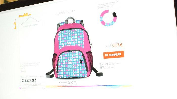 Actualmente se pueden diseñar con esta aplicación el modelo de mochila Kimex con el portalápices a juego, aunque seguramente en un futuro se amplie el catálogo de productos que podemos personalizar.