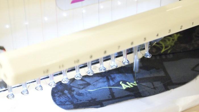 El proceso final consiste en el bordado de un texto, por ejemplo el nombre del niño, en la parte de la mochila que elijamos