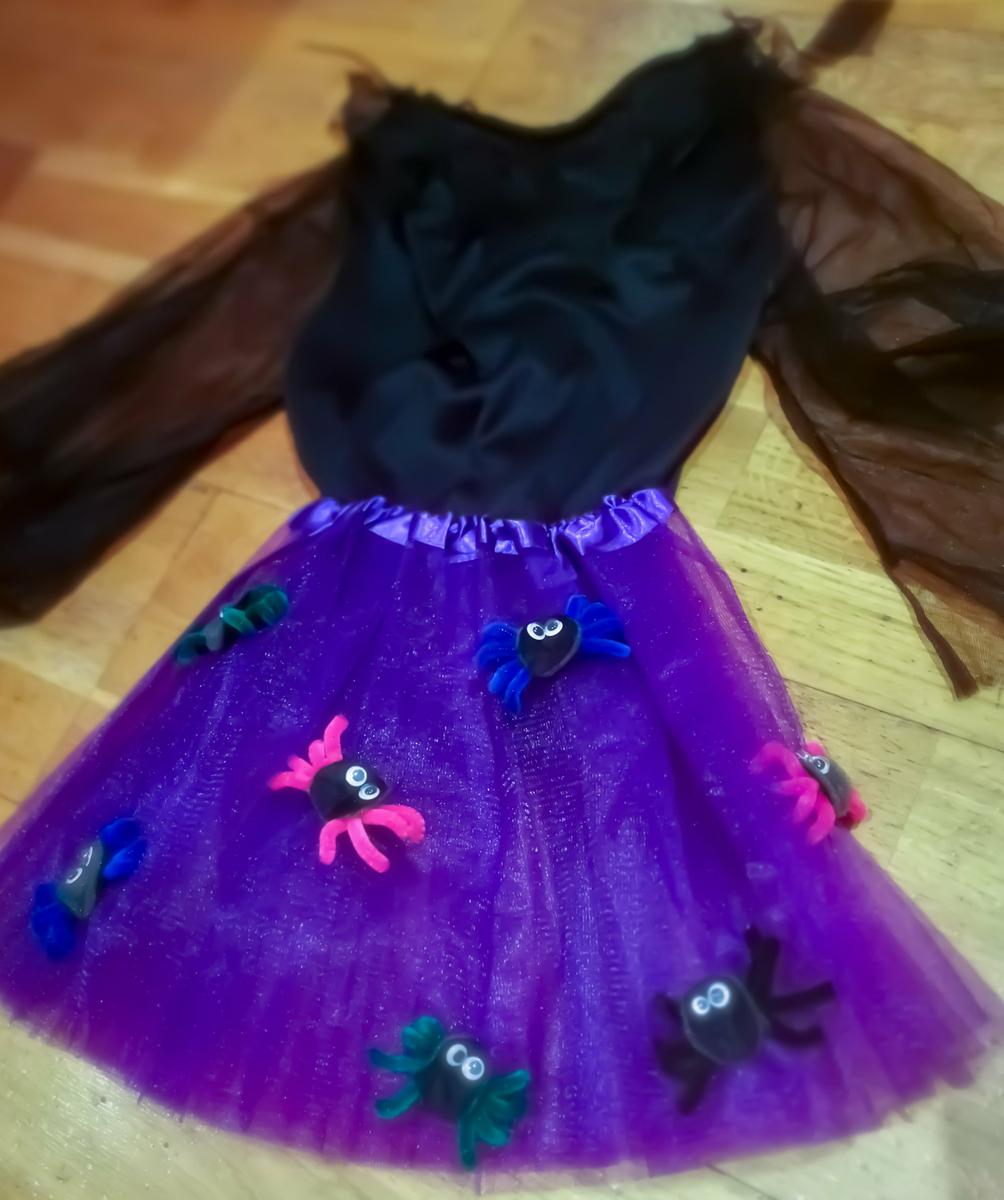 Las mallas negras de la foto de los materiales, van debajo de la falda, porque en 31 de octubre no está el día para ir piernas al aire!