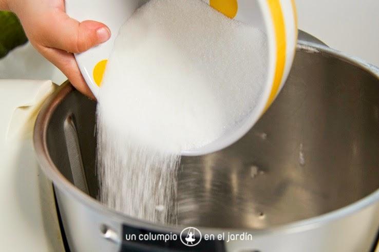 Primero, introducimos en el vaso 200 gr de azúcar y programaremos la máquina alternando velocidad 5 y 10 hasta conseguir un azúcar glas. Luego, añadimos 4 limones limpios de piel y pepitas, 500 gr de agua y pulsaremos el botón “turbo” durante 3 seg.