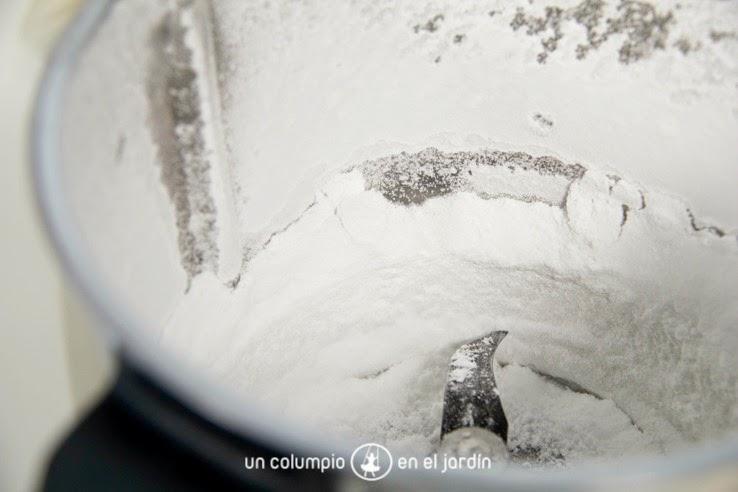 Una vez hecho esto, añadiremos 800 gr de cubitos de hielo así que preparaos para el ruido infernal que se desata y mantened la calma.