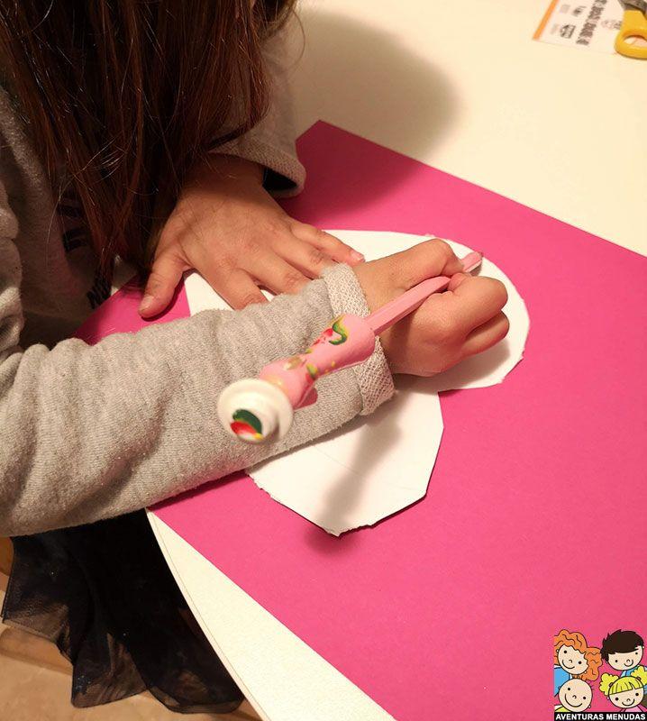 Hacemos unos pequeños cortes por donde queremos que pasen los brazos y las piernas con una tijera o un cutex. Pasamos un limpia pipas por los dos agujeros de los brazos, y otra por los agujeros de las piernas.