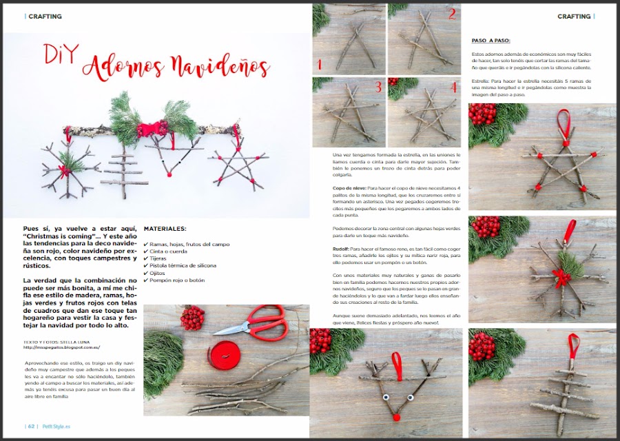 Un diy ecológico y handmade ideal para hacerlo en familia porque además de estos adornos ser sencillos de realizar, como los materiales para realizarlos son naturales podéis aprovechar para pasar un buen rato por el campo o el parque buscando ramitas y cuando caiga el sol en casita a lo calentito podéis elaborarlos, planazo, ¿ a que sí? Por no hablar de que cuando vayan a visitaros en navidad familia y amigos lo bien que váis a quedar fardando de adornos propios, ¡yeah!.