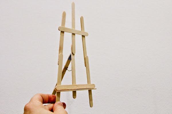Eso sí, el palo largo del medio siempre va unos 2 cm más arriba que los laterales. Así nos quedará el efecto caballete/atril.