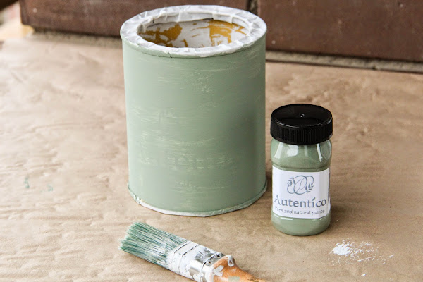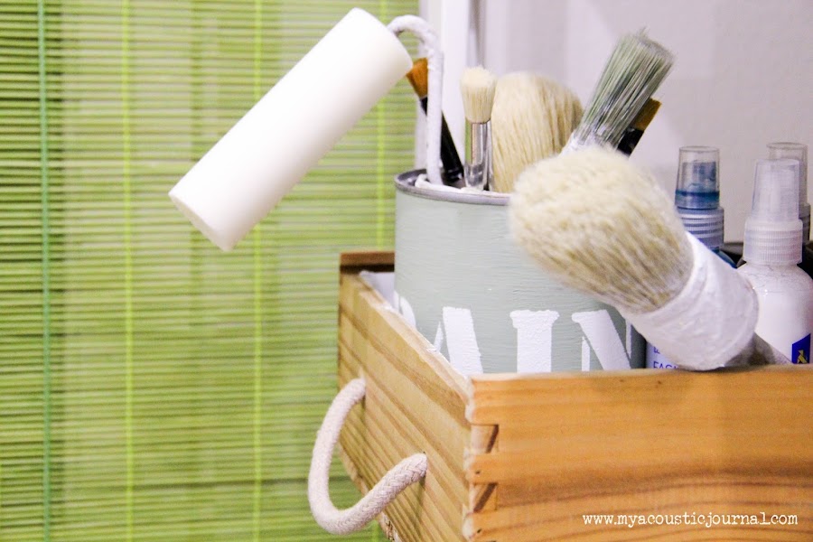 Para meter las brochas y demás, guardé uno de los botes de Auténtico Chalk Paint de los que gasté para pintar el armario de la peque.