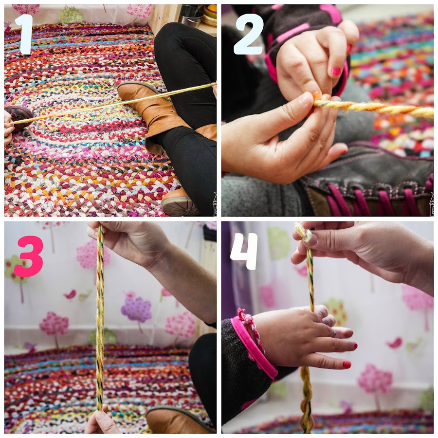 Sunflower aprendió a hacerlo en su escuela hace meses, e intentó enseñarme, aunque acabé necesitando la ayuda de Meritxell, una de sus maestras Waldorf, para acabar de verlo y entenderlo. Así que ¡gracias Txell! ¡Nos encanta hacerlos!
