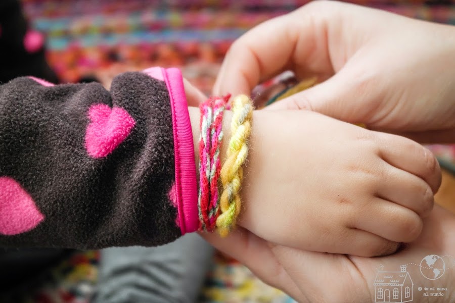 Cada vez que la hemos enseñado a otros niños y a sus mamás o papás, han alucinado por lo fácil que es hacerla y lo útil que resulta, no sólo sirve de pulsera, otro uso básico es utilizarlo como cinta para colgar los abrigos.