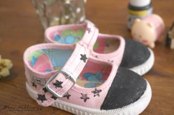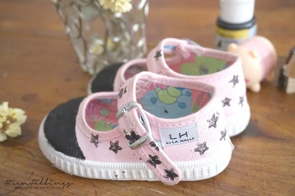 Y con los zapatitos de verano de lona se ve mucho, así que se me ocurrió hacer un invento con pintura para tela.