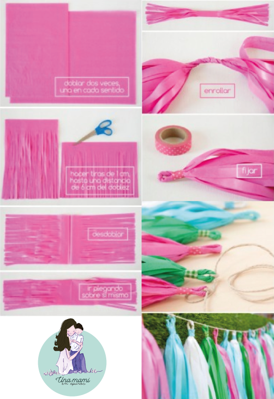 También podemos decorar con pompones de papel de seda en varios colores para darle vida al lugar, el tutorial lo tienen acá: