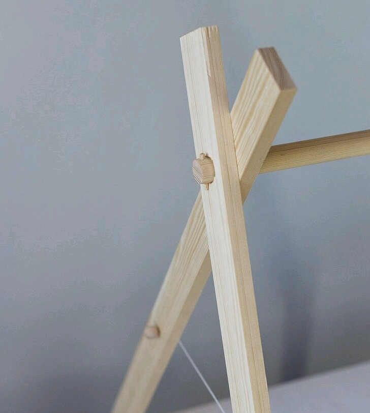 El proceso es muy sencillo, con una broca solo tendremos que hacer un agujero a la misma altura en los cuatro listones con el diámetro del listón redondo. Y otros cuatro a mitad altura para pasar la cuerda, la cual anudaremos a cada extremos para que haga tope en las patas.
