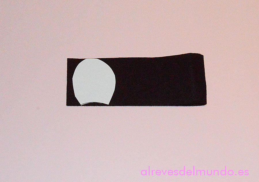- Cortamos 4 trozos de fieltro negro con forma de oreja
