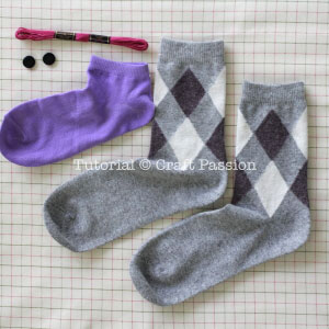 - un par de calcetines altos de colores. (consejo, si el calcetín es gordo quedará mucho mejor el resultado final)