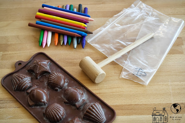 Un molde de bombones. Existen muchas formas en el mercado, nosotros tenemos éste de motivos marineros.Muy importante: no sirven los moldes para cubitos de hielo ya que la mayoría no son resistentes al calor y tenemos que hornearlo.