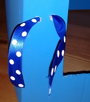 Una vez seca la caja, para poder colgar las cortinas, tienes que hacer un agujero a cada uno de los lados de la parte superior de la caja. Luego mete el lazo por la parte exterior de los agujeros y haz un nudo en la parte de dentro de la caja para que no se vean.