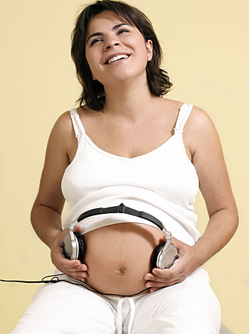 Luego puede escogerse una canción de cuna y cantarla , continuar la grabación con otros cinco minutos de música clásica, procediendo primero a identificarla: "Ahora vas a oír...". Usar la grabación en forma regular, todos los días, especialmente durante los dos últimos meses del embarazo. Colocar los audífonos reproductor en la parte baja de cada lado del abdomen, al nivel de la línea del bikini. Utilizar el mismo volumen que sea adecuado (para los mismos padres). Preferiblemente en las primeras horas de la noche.