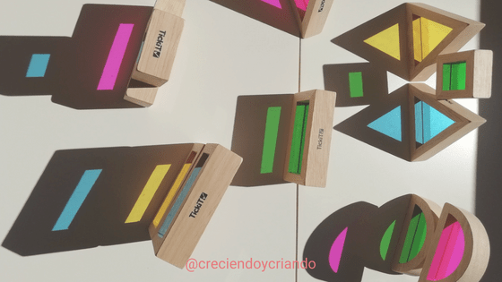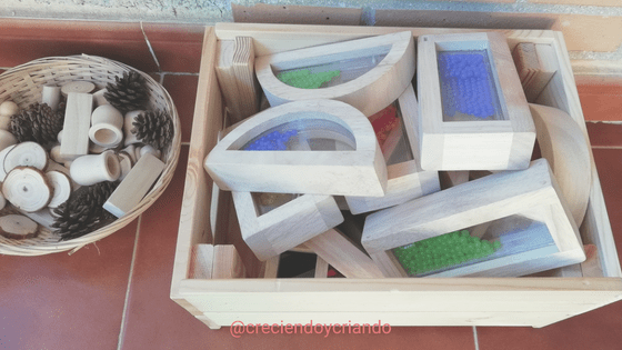Otro elemento que hemos incluido en nuestro espacio de juego exterior han sido los Bloques Arcoiris Guidecraf. Nos sirven tanto para la construcción, como para el juego simbólico o para jugar con los rayos de sol que entran por el balcón.