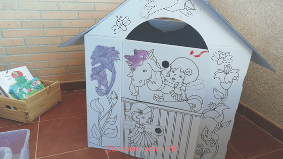 En su lugar, pusimos esta casita de cartón, donde además podíamos dar rienda suelta a la creatividad, y nos daba la posibilidad de tener un espacio de expresión creativo. Ha sido todo un acierto.