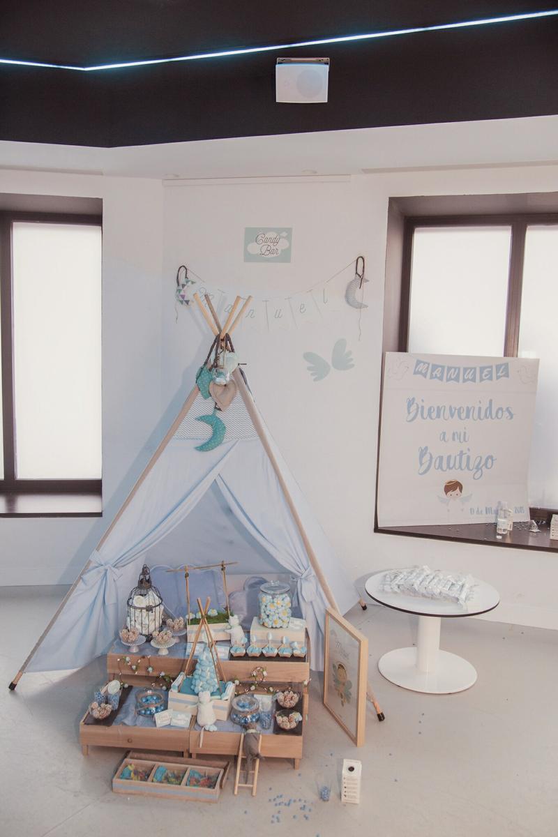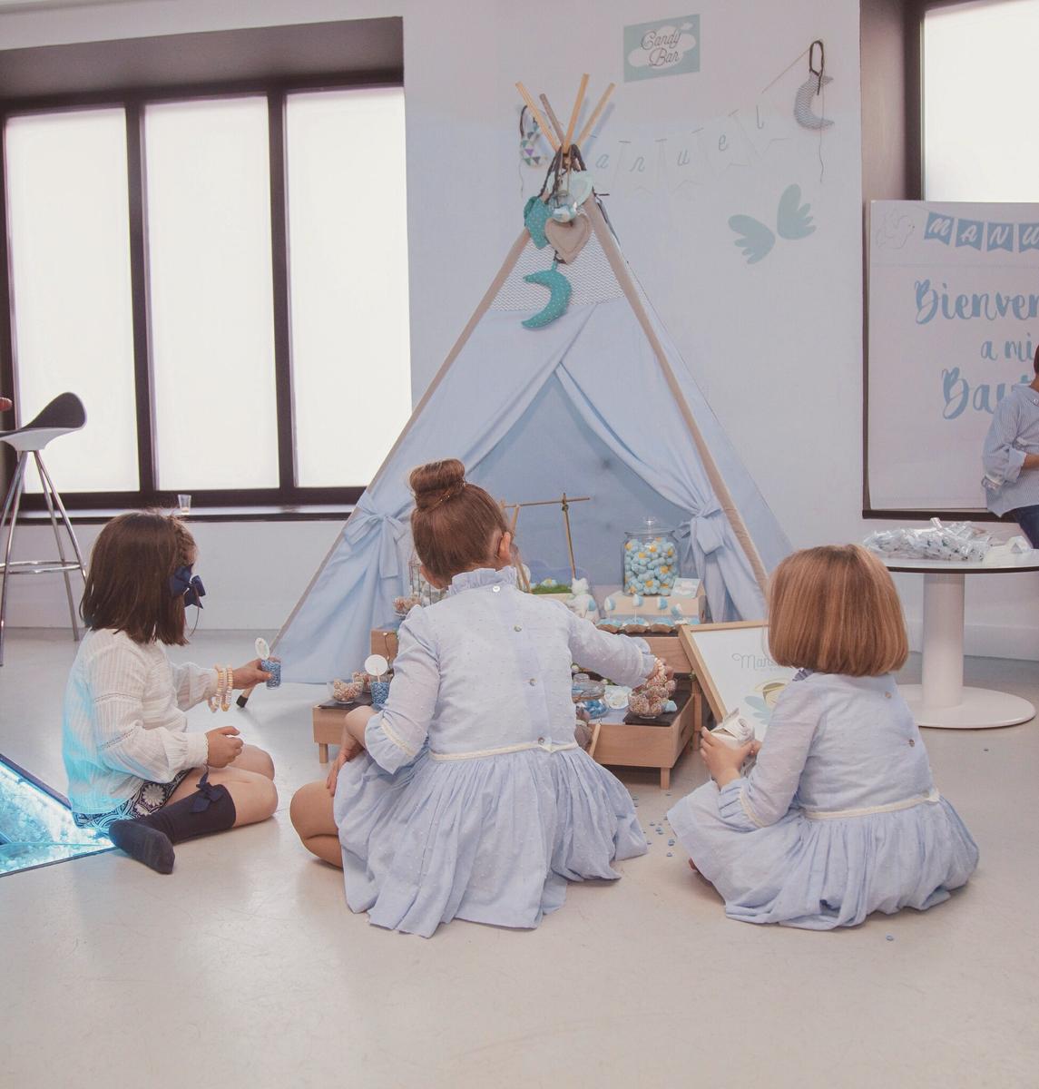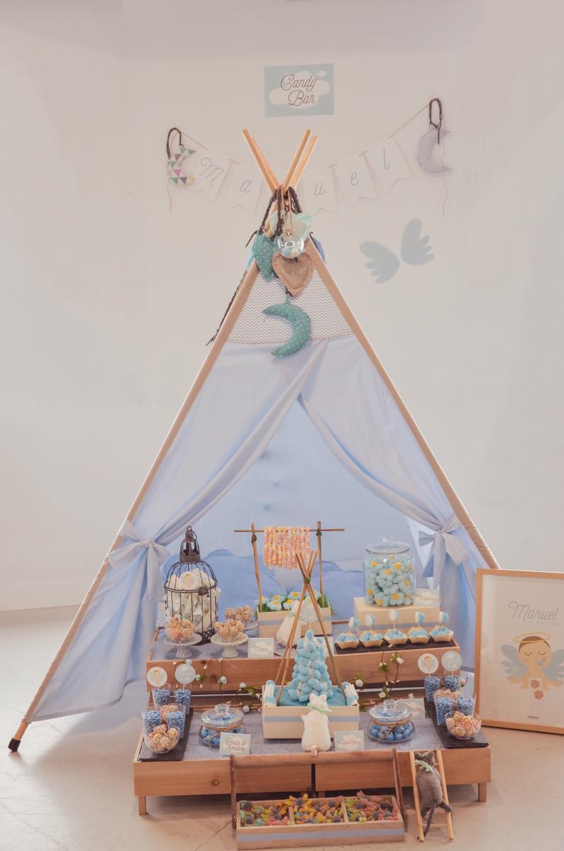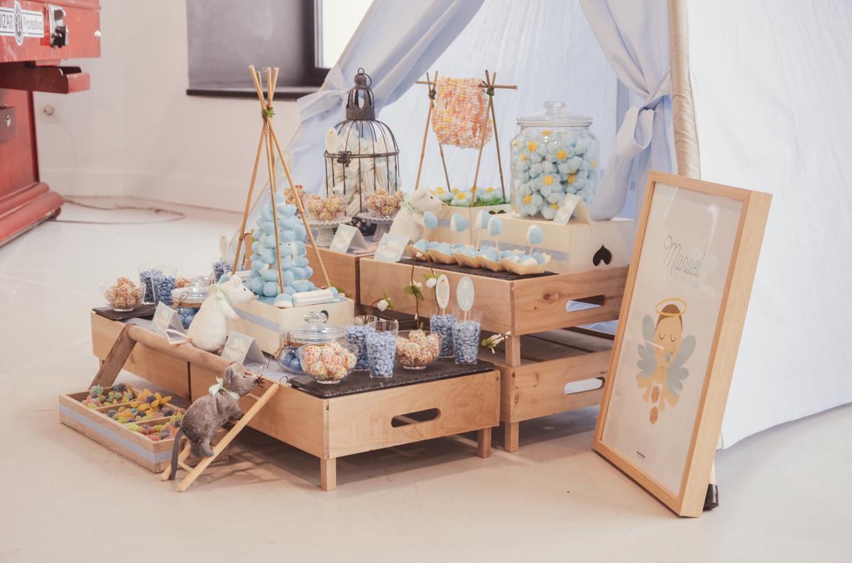 Ellas colocaron tanto el tipi como el candy bar con las cajitas de madera, los ratoncitos, las jaulas y todos lo detalles que llenaron con chuches ideales y riquísimas.