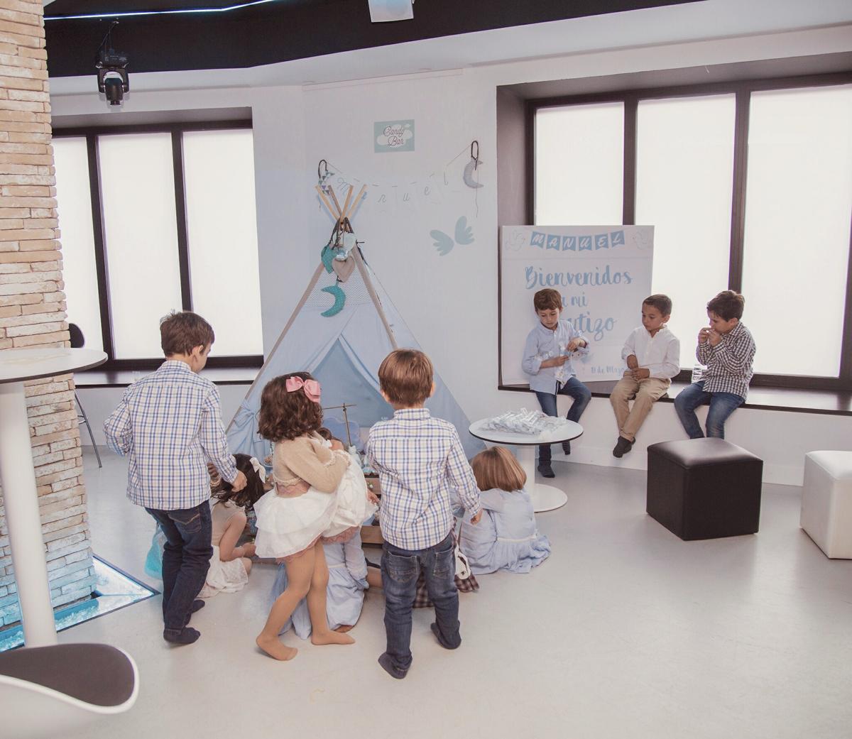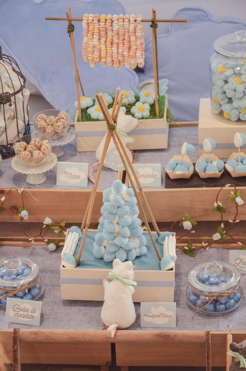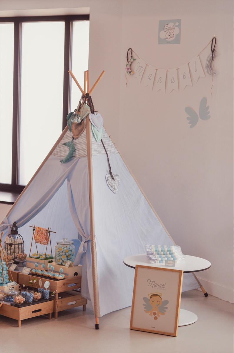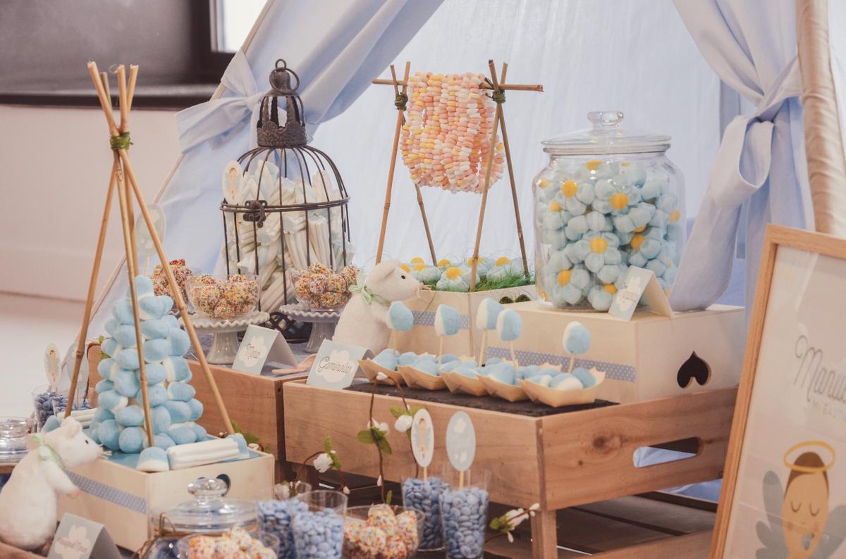 Ellas colocaron tanto el tipi como el candy bar con las cajitas de madera, los ratoncitos, las jaulas y todos lo detalles que llenaron con chuches ideales y riquísimas.
