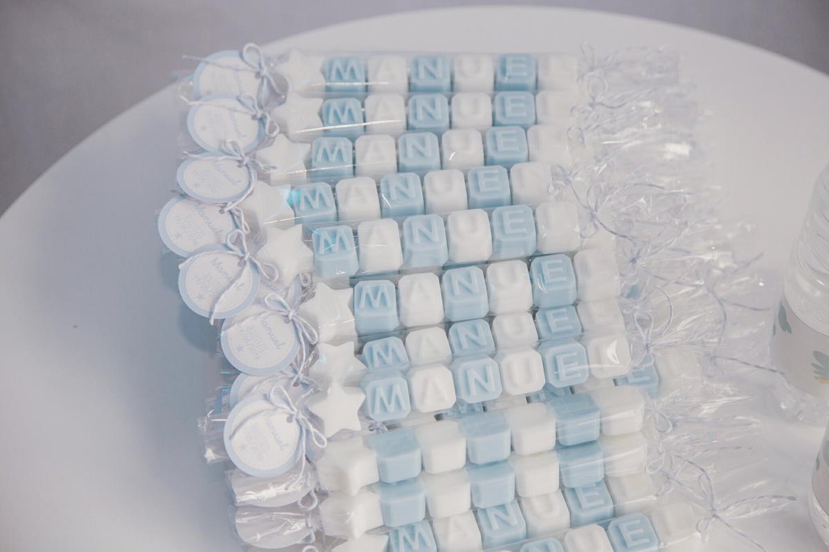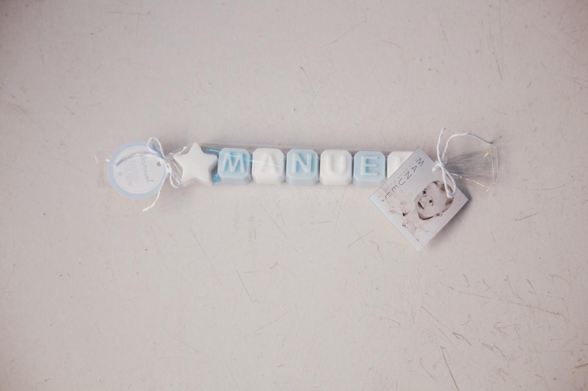 Así que encargue a LA NUBE DE LAURA, estos jaboncitos de manos personalizados con el nombre de Manuel y una foto chiquitita de la sesión de FOTOS BIEN CHULAS. Un exitazo, le encanto a todo el mundo.