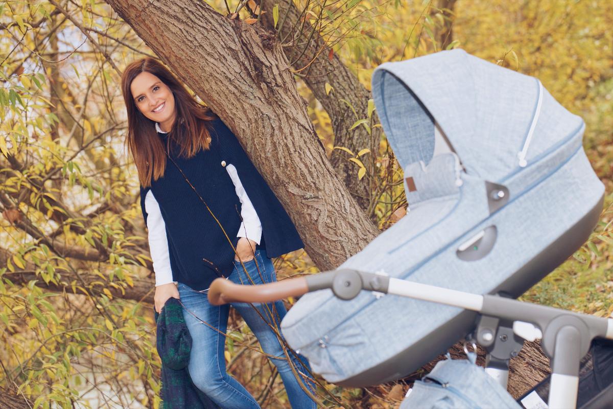 Como en todos los diseños de Stokke, el asiento y el capazo se ubican alto para facilitar el contacto visual y la interacción entre padres e hijos.