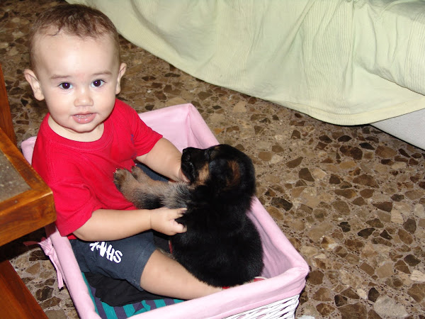 Sí, su más fiel escudero pero estos días he descubierto una nueva faceta. Sí, Gabo lo protegerá de todos los males del mundo pero tiene bien claro que yo soy la MADRE y como tal me tiene que obedecer. Ja ja ja...me rió porque la escena fue divertida. Cuento: