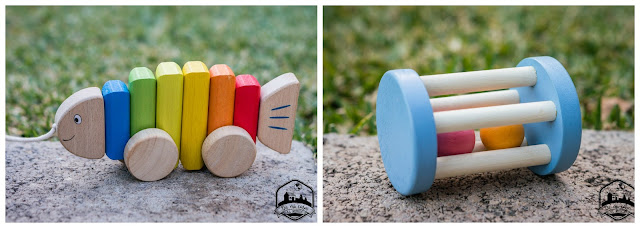 No es tan difícil encontrar juguetes de este tipo. Mira por ejemplo el pez para arrastrar o el rodari que elegí para mi Atelier, ambos son de madera y la pintura respeta el poro y su veta.