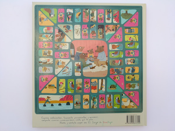 El juego que construye la mamá de Osamí es el mismo juego que encontramos en la contra del libro, el juego al que Susanna nos invita a jugar y que ya he probado con las peques. En clase somos muy fan de los juegos de mesa, así que cuando he dicho juego nuevo no se lo han pensado ni un segundo.