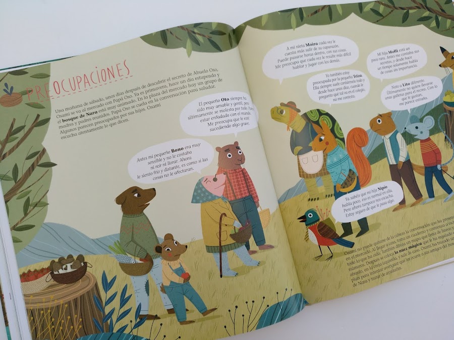 Además de la historia de Osami, que está contada en breves fragmentos separados y dedicados a diferentes sentimientos como la tristeza, las preocupaciones o el miedo, encontramos un montón de historia muy interesantes que el abuelo oso le cuenta a su pequeña nieta, ejemplificando momentos que muchos niños pueden estar viviendo y no saben cuál es el camino correcto para enfrentarse a ellos.