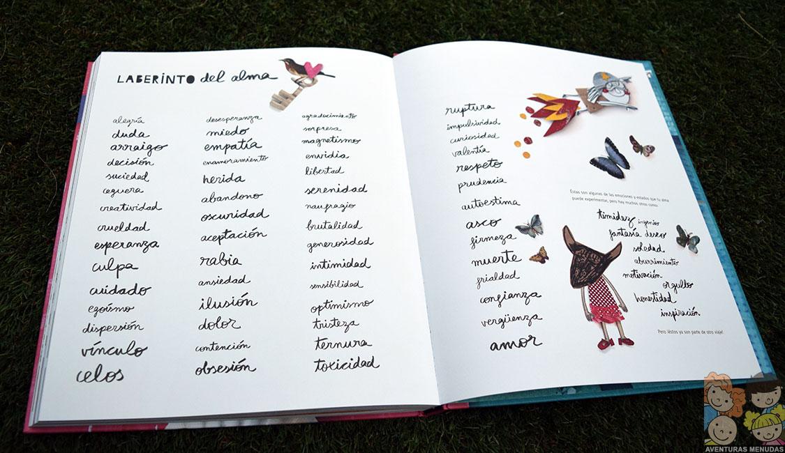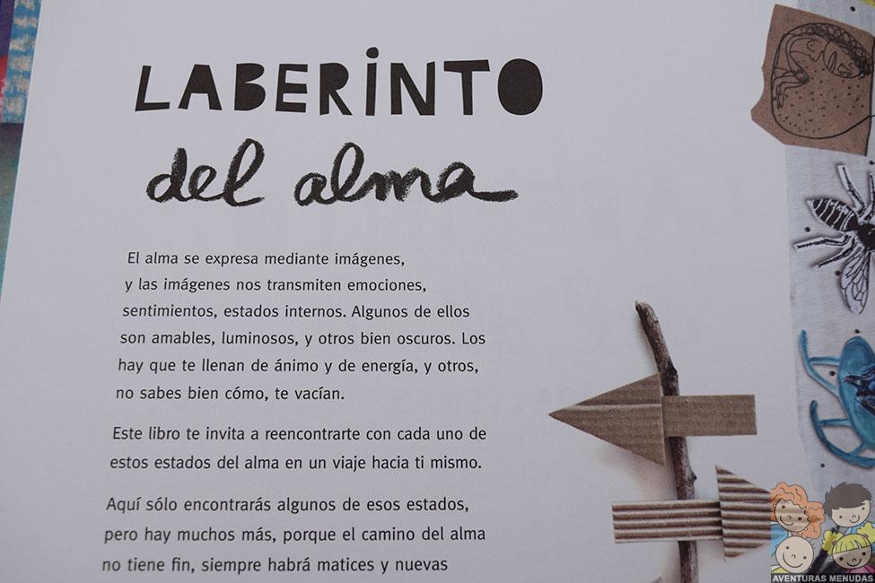 Para completar este libro, Anna nos sugiere al inicio del mismo, un laberinto lleno de imágenes y transiciones entre emociones. Es una gran oportunidad para jugar con el mismo a modo del juego de la oca, ya que permite, solo con fichas y dados, pasar entre las diferentes ilustraciones y jugando a indicar lo que nos transmiten o lo que vemos (según la edad de los jugadores), hasta llegar a lo más profundo del camino, que nos lleva al alma.