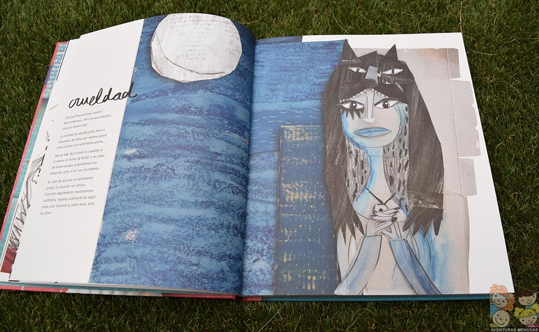 Como habréis podido ver, las ilustraciones son preciosas. Cada una de ellas está perfectamente estudiada para reflejar la emoción que se detalla. De hecho, a los que conozcáis la obra de Anna Llenas, os llamará la atención el contraste entre las ilustraciones que se acercan mucho a las de otros cuentos, como el del Monstruo de Colores, frente a otras más intimas e intensas que comparten espacio en este libro.